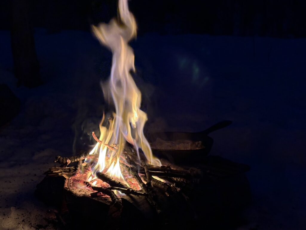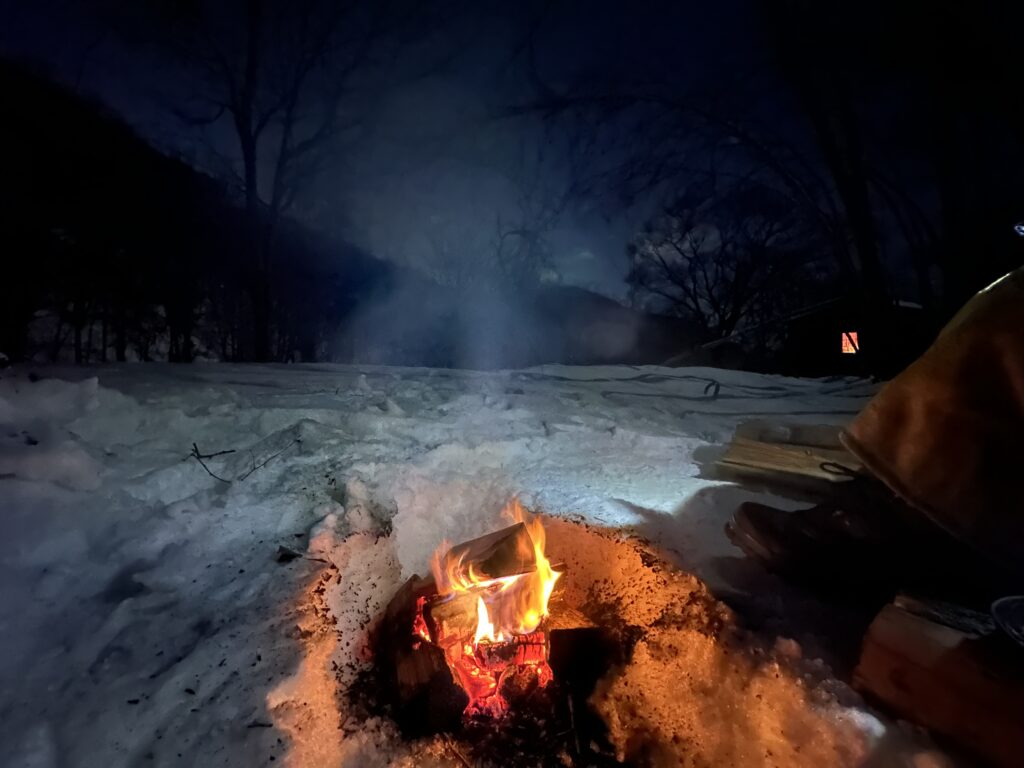焚き火だけが唯一の暖ですから。